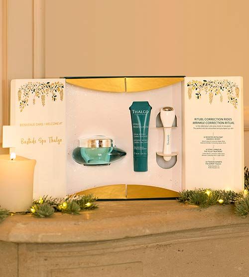 - Wrinkle Coorection Rich Cream - 50 ml This nourishing cream is rich in Hyaluronic Acids and marine Pro-Collagen. Day by day, wrinkles appear to gradually fill in. - Intensive Wrinkle-Correction Serun - 30 ml With an ultra-high concentration of Hyaluronic Acids and marine Pro-Collagen, this gel-serum is enriched with a "retinol-like" plant active ingredient recognised for its ultra-smoothing properties. After 14 days, even established wrinkles appear corrected. - Roller Booster N°1